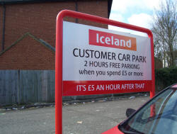 The Iceland car park starts beyond the red bollard